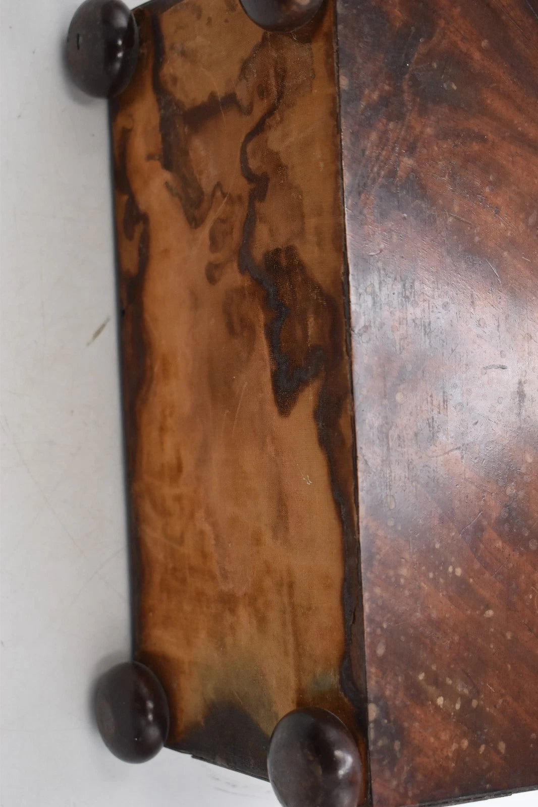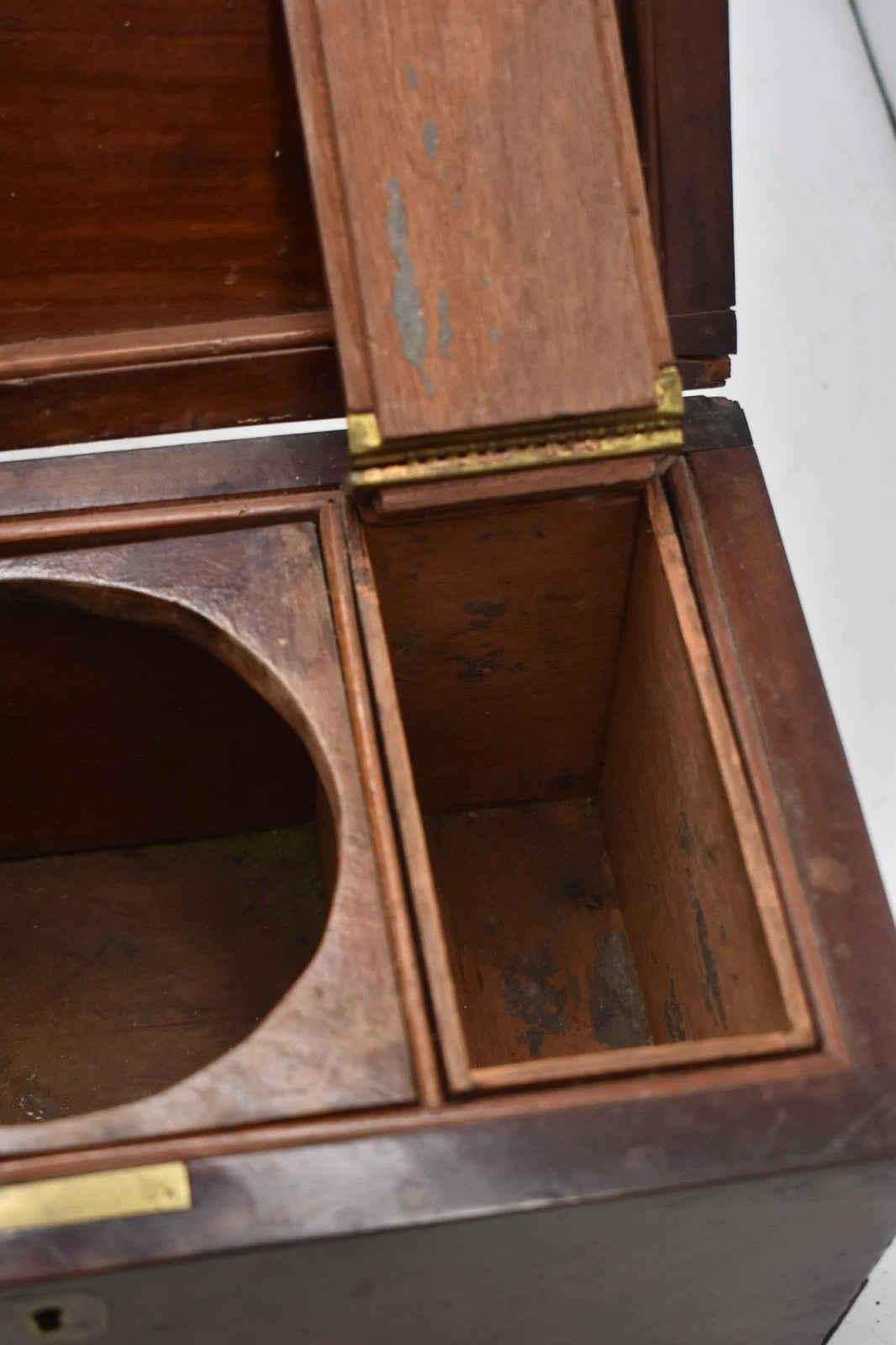 The tea caddy is in lovely overall condition for its age, though it does need a little TLC in places. Please refer carefully to the photos. The original key is not included.