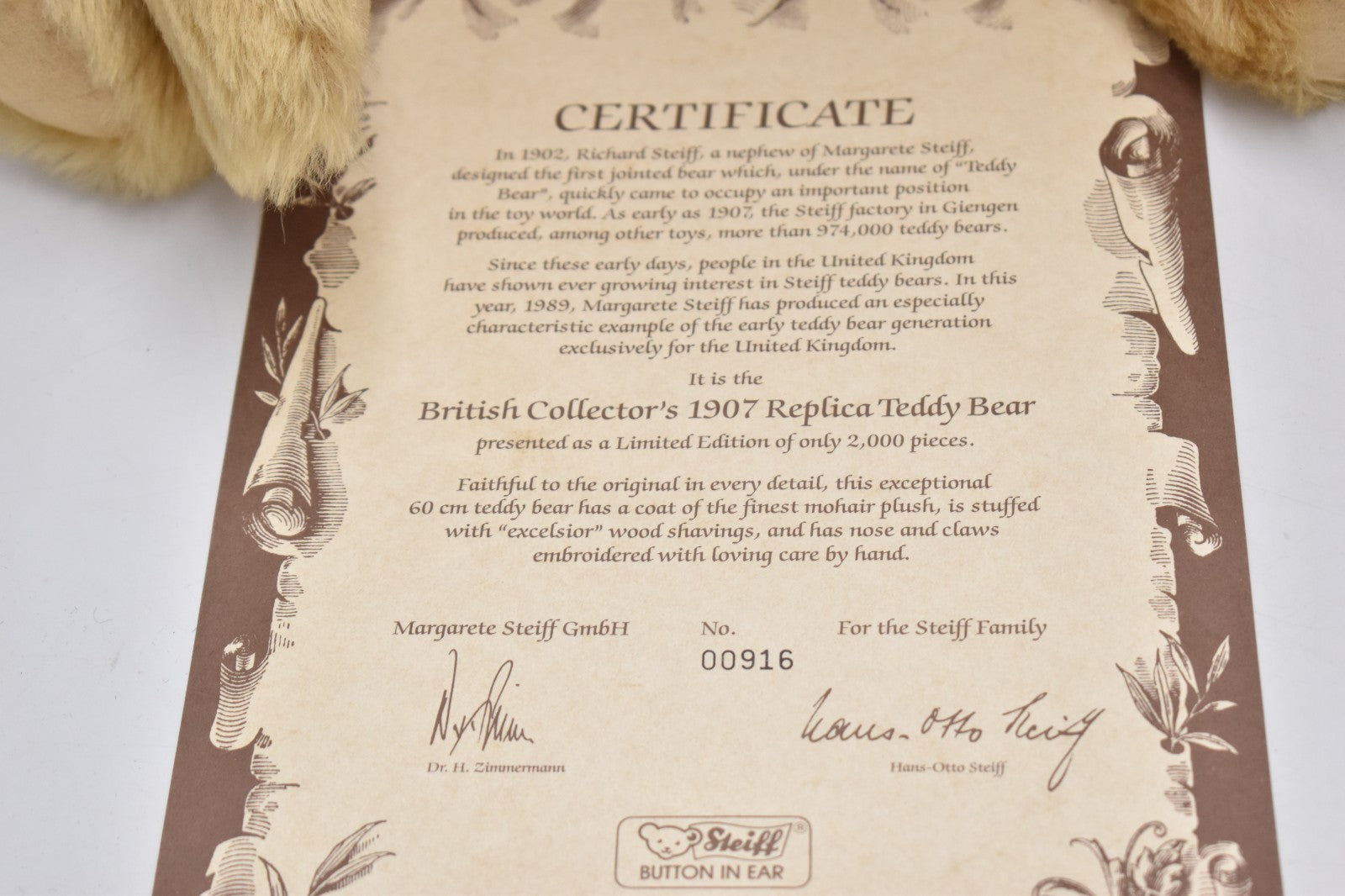 Steiff British Collector's 1907 Replica Teddy Bear - EAN 0174/61 - Limited Edition #916 of 2000 - 60cm - Mohair