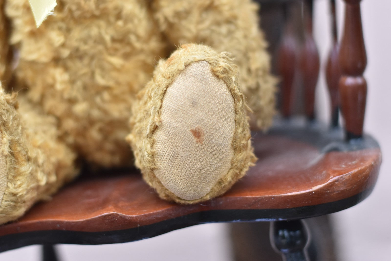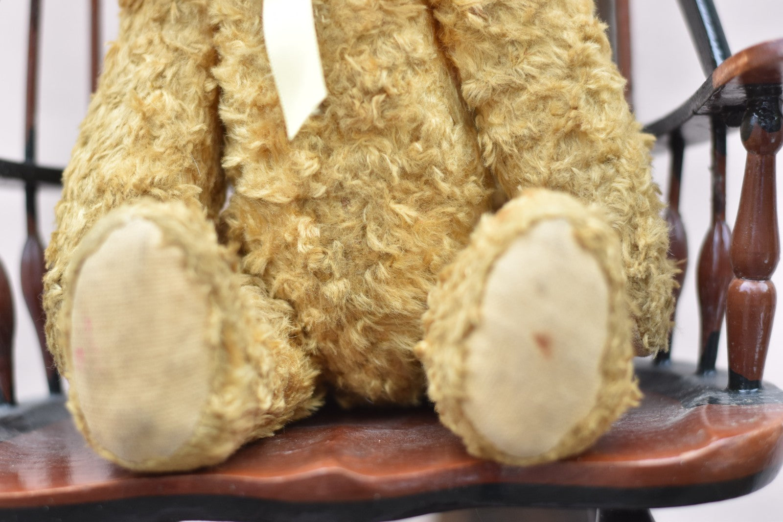 This delightful 1950s silk plush bear is perfect for collectors of vintage European teddy bears or as a unique display piece full of mid-century charm.