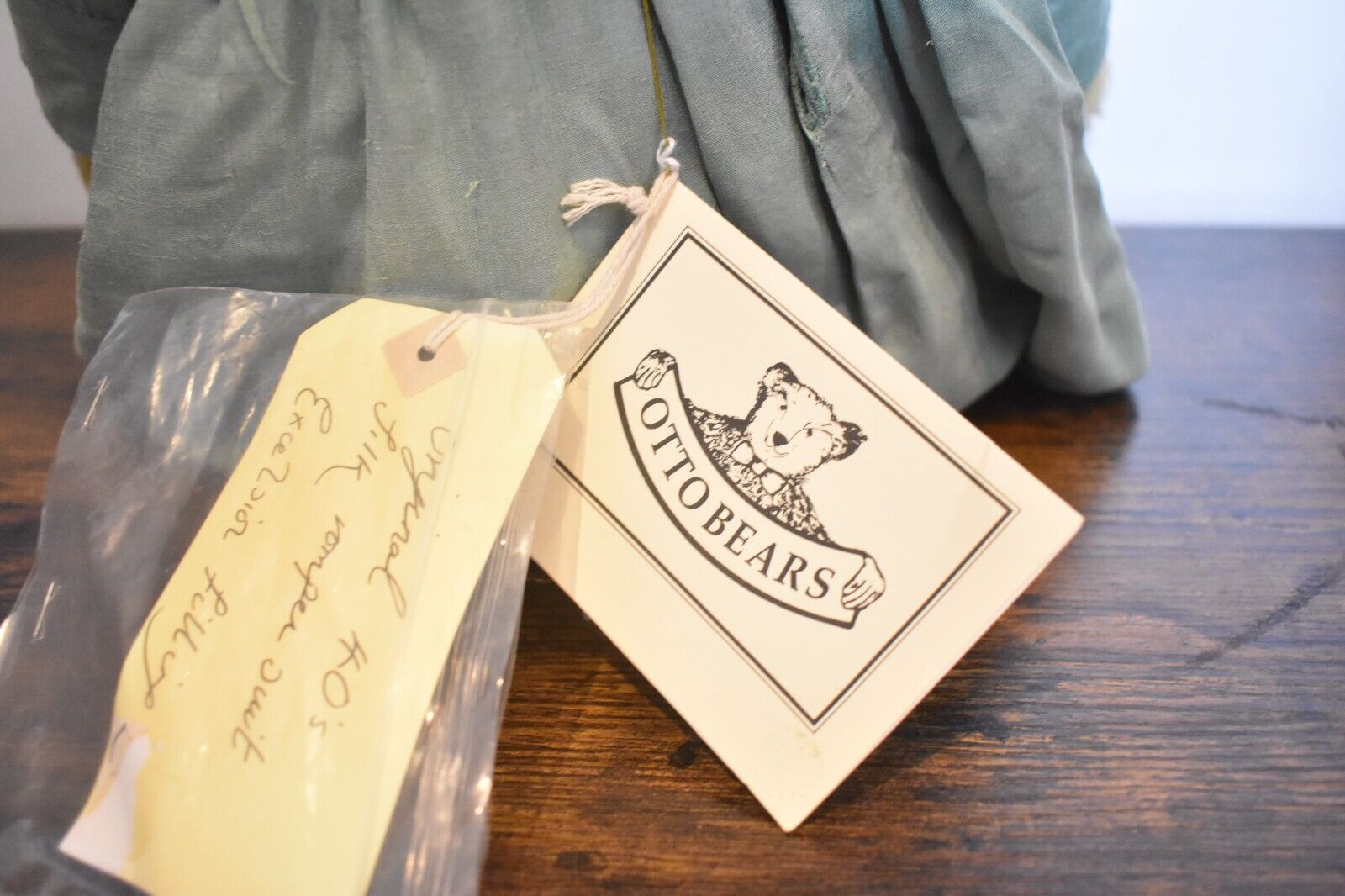 Meet Fabia, a One-of-a-Kind (OOAK) Artist Teddy Bear crafted by Otto Bears and designed by Tracey Surman. This exquisite vintage mohair bear is beautifully dressed in a 1940s silk romper suit, adding to her unique charm. In lovely condition, she is a true collector's piece.